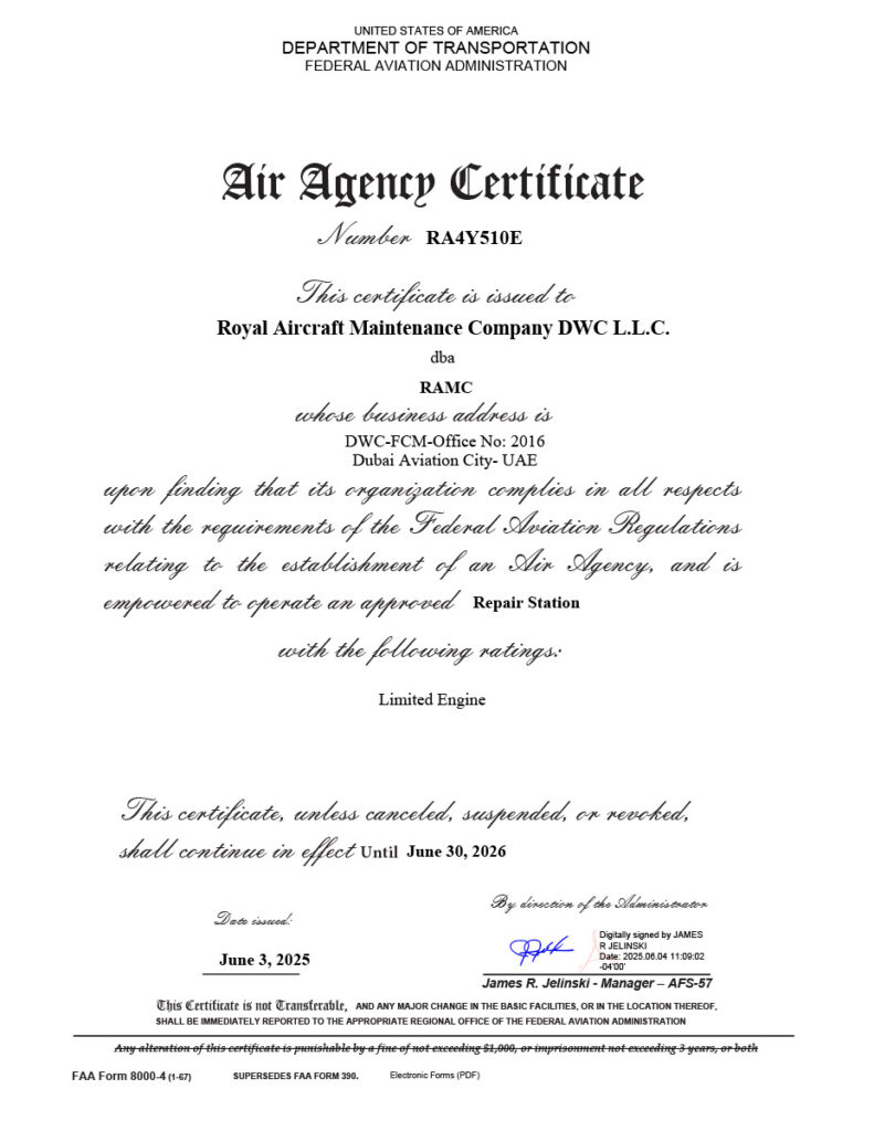 We are qualified and ready to perform an inspection, rectification, and certification on the following aircraft types and engines as per our current scope of approval: